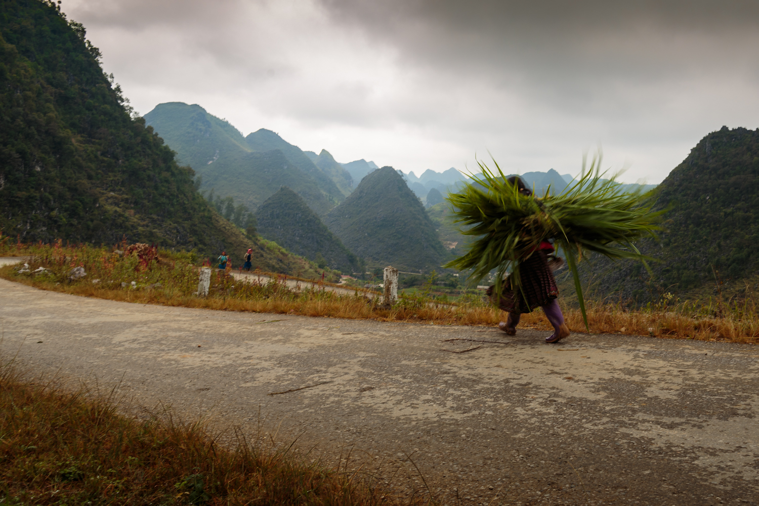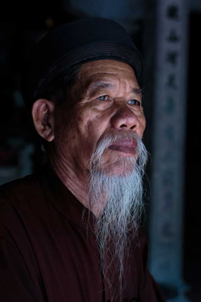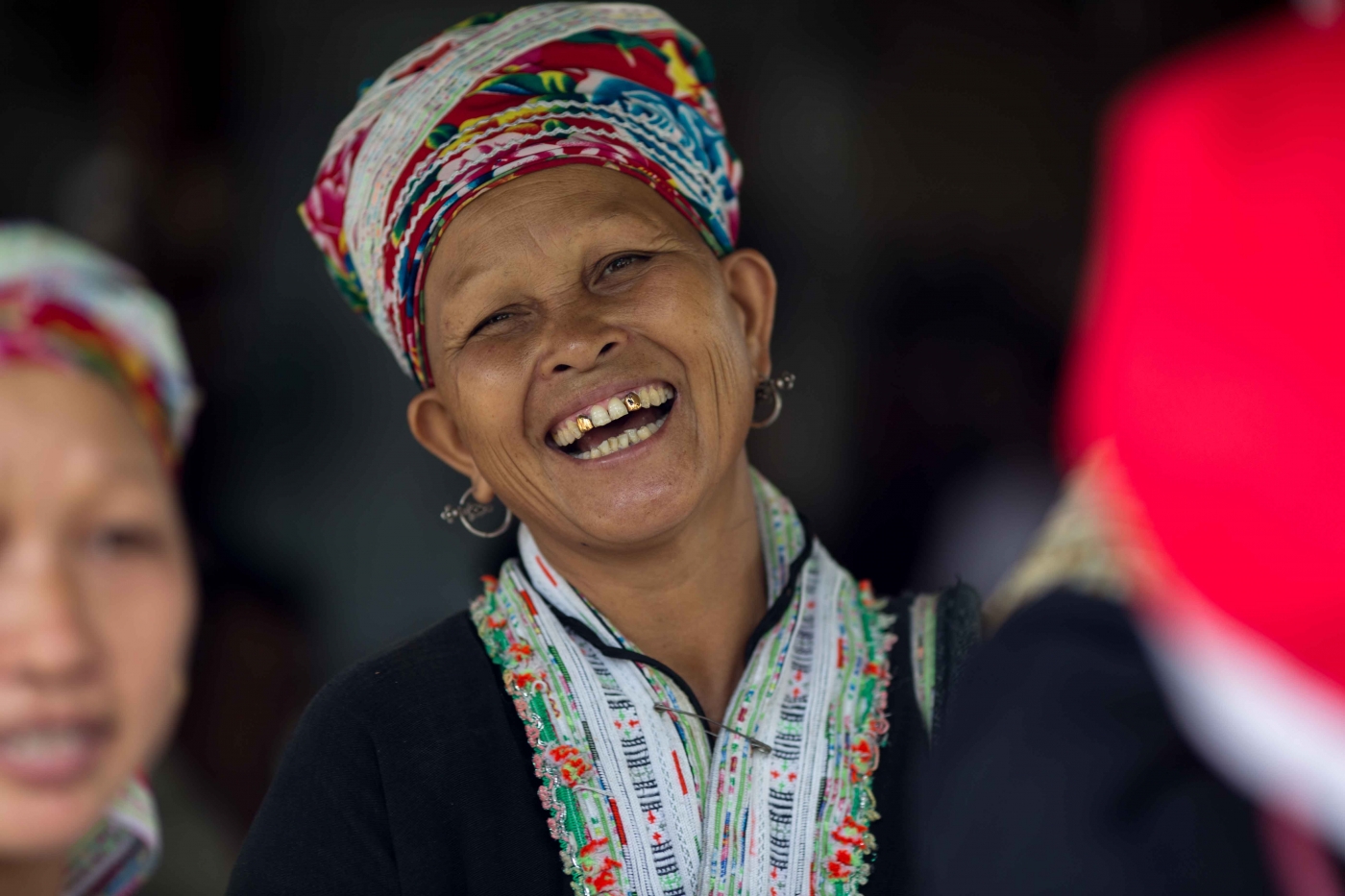 Muong patriarch observing the bustle and hustle of the Muong Hum Sunday market