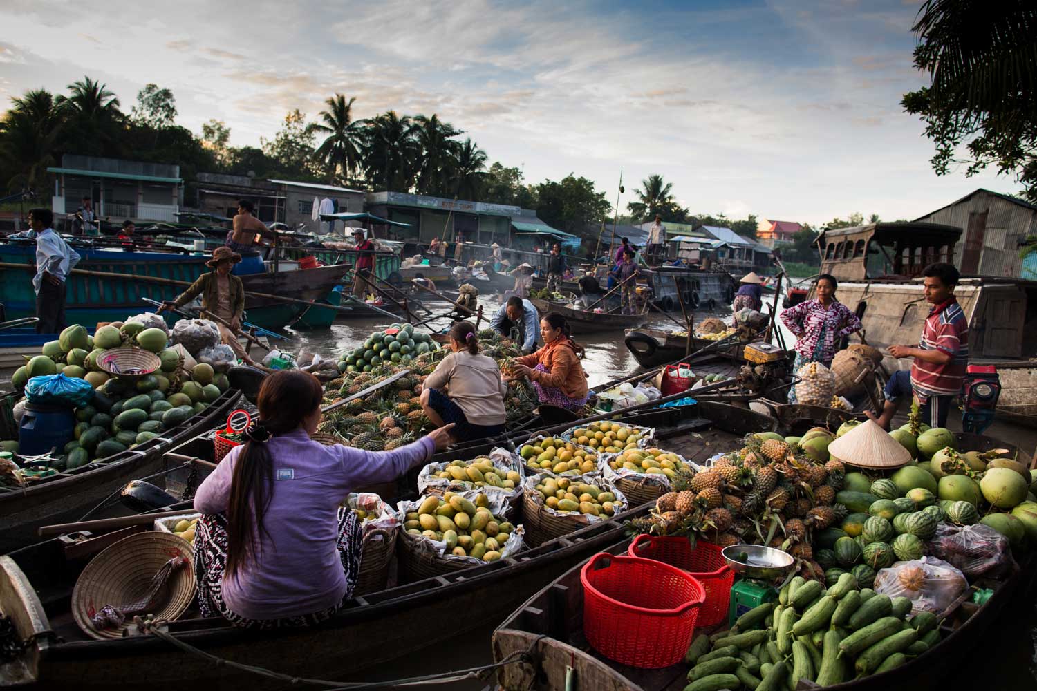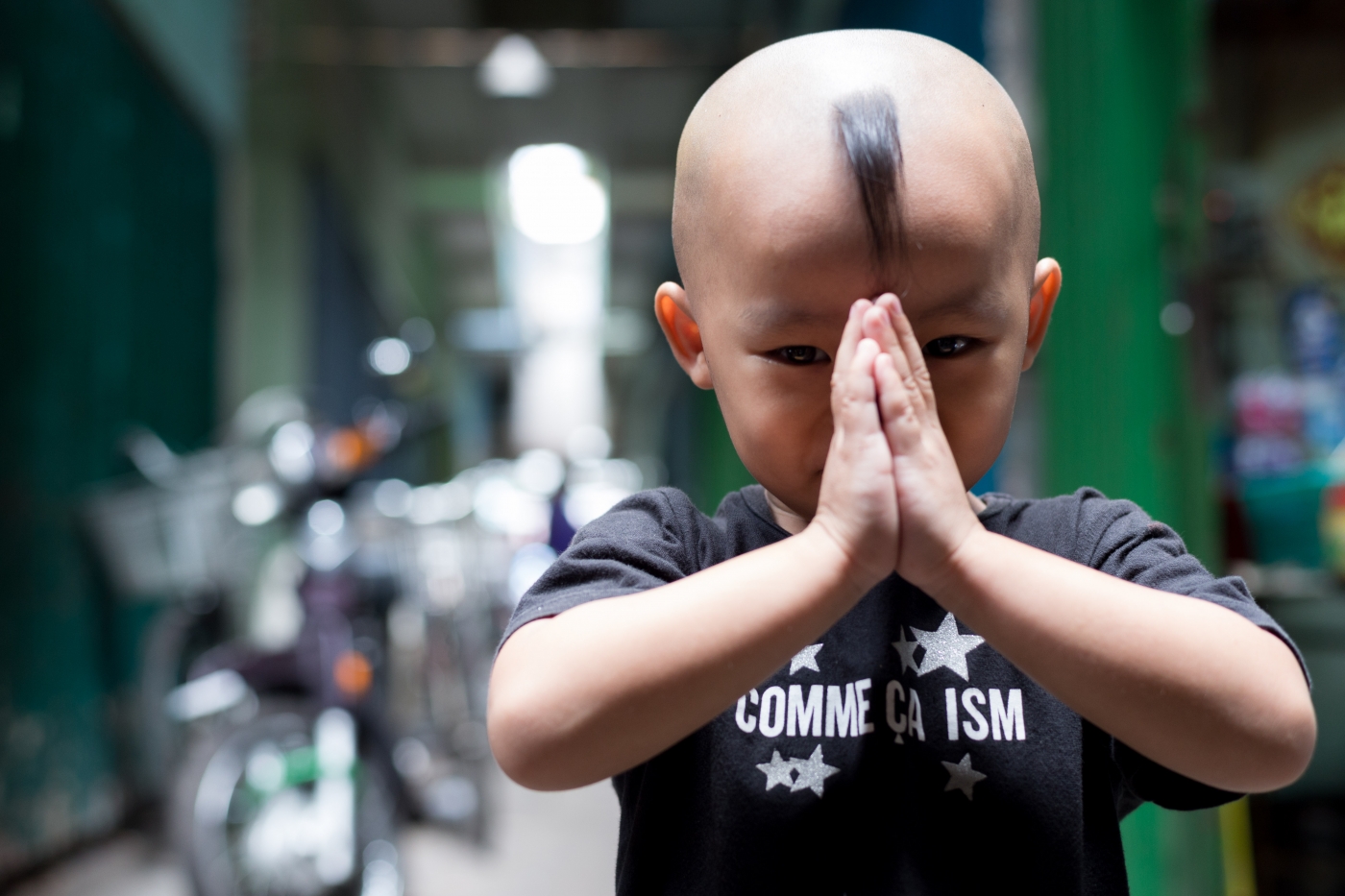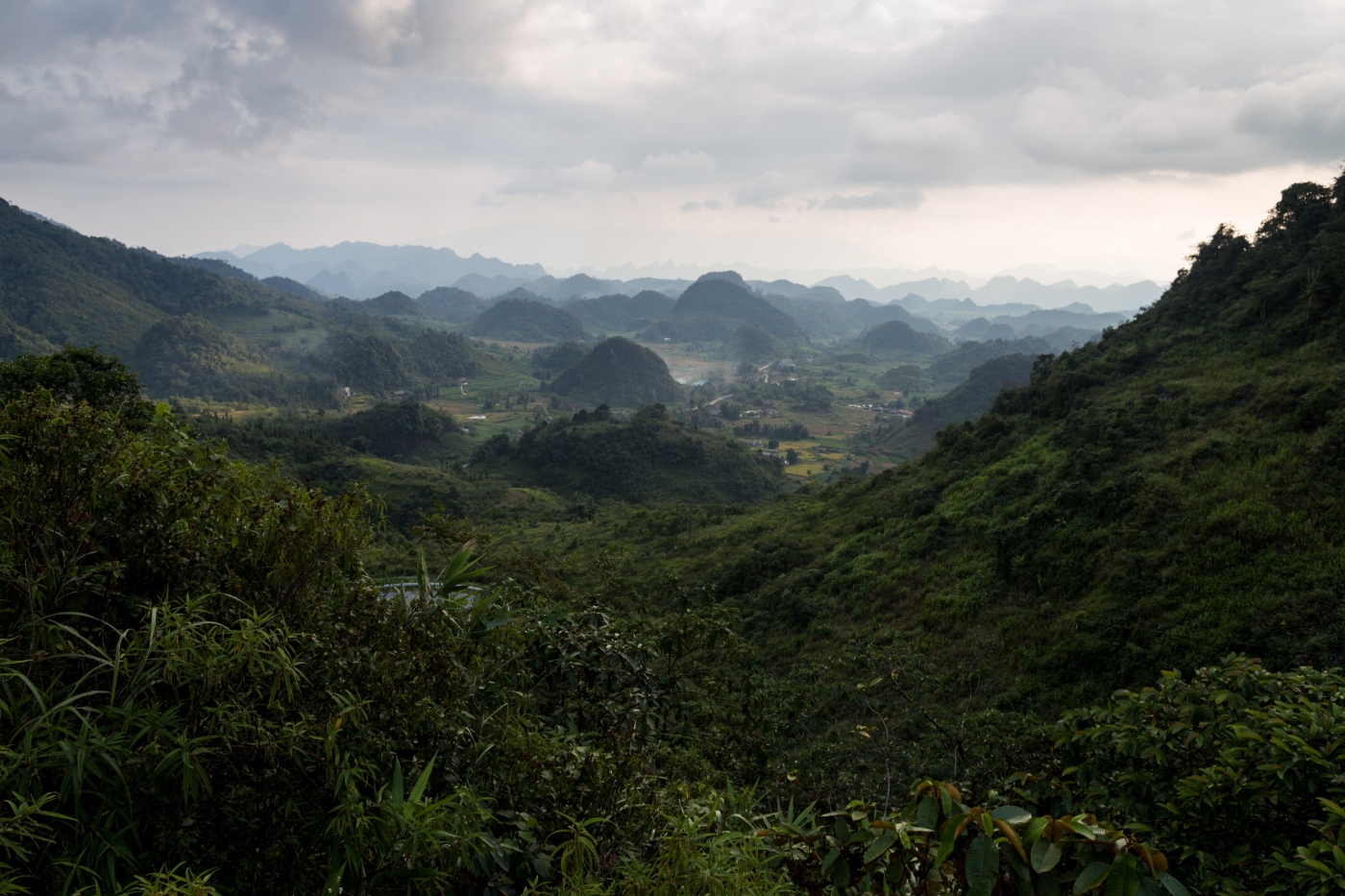 Muong patriarch observing the bustle and hustle of the Muong Hum Sunday market