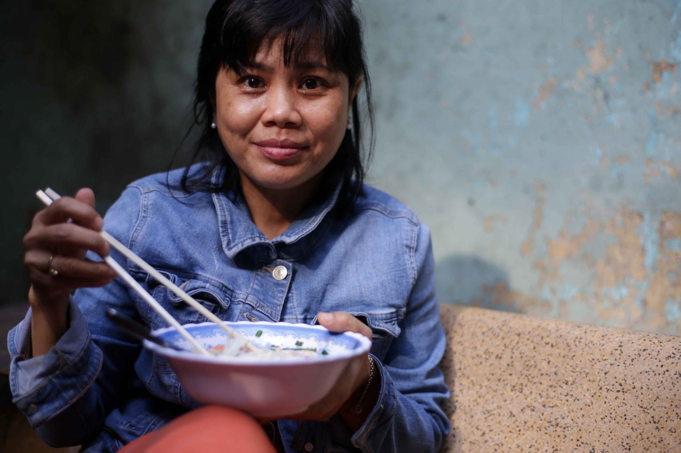 Ha Giang - Woman preparing Bánh cuốn (rolled cake) for breakfast